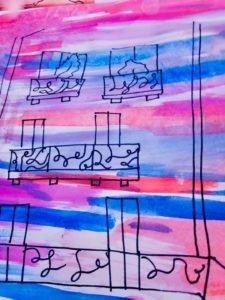 As an introduction to the theme “Built Environment” British School of Lanzarote Year 8 students had fun producing creative and colourful backgrounds, to then develop sketches of different houses.